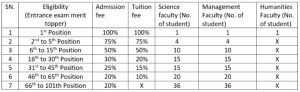 The Academy also provides 100% scholarship to grade 11 students (from each faculty) securing 1st, 75% to students securing 2nd and 50% to students 3rd position in the NEB examination.