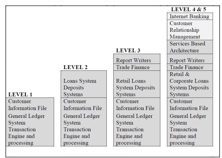 - Sum total of all information technology components that enable a bank to manage its core business activities in a centralized model