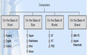 Computers are classified on the basis of work, on the basis of size, on the basis of model and on the basis of brand.