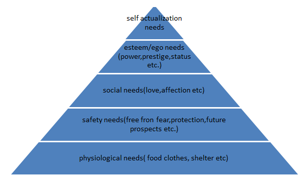 All human behavior is directed towards fulfilling their needs. Abhram Maslow’s needs hierarchy theory is based upon the needs of human beings. According to this theory, each and every people have certain needs. In response to that need, s/he is motivated to do work. Human needs have hierarchy. That’s why to motivate any people to work. The need of that person should be fulfilled according to hierarchy because as one need of that person is satisfied, another need will be created respectively. The needs have been classified in a hierarchy as follows:
