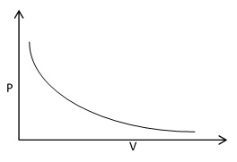 The plot of pressure (P) against volume (V) at constant temperature gives a hyperbolic curve. At very low pressure volume of gas in high and as the pressure is increased, volume of gas goes on decreasing.
