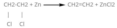 When vicinal dihalide is heated with zinc dust, two halide atoms are removed from the compound and ethene is formed.