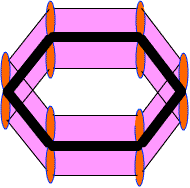 - A regular hexagonal structure with an inscribed circle.