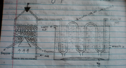 The concentrated are is mixed with 2% coke and fed into shaft furnace through a cup and wine. Arrangement the furnace is heated by pruning fuel and air is below in cinnabar is first oxidized to mercuric oxide which then decompose into mercury the vapor of mercury are condensed in Y-shaped. Earthen condensers cooled by water.