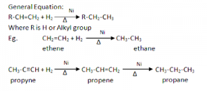 Alkanes can be prepared by the catalytic hydrogenation of unsaturated hydrocarbons in the presence of catalyst ‘Ni’ or ‘pt’ at 200⁰C to 300⁰C.
