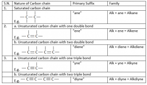 Primary suffix = 1-ene (Here, 1 is the position of double bond)