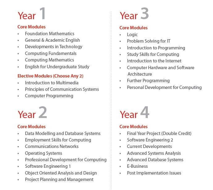 This course provides a professional education in the theory and practice of computing, with special emphasis on the techniques, theory and applications in industry and commerce. The course covers principles of programming, operating systems, application development and software engineering. The course develops the skills necessary for you to demonstrate professional competence enabling you to work successfully in the computing industry.