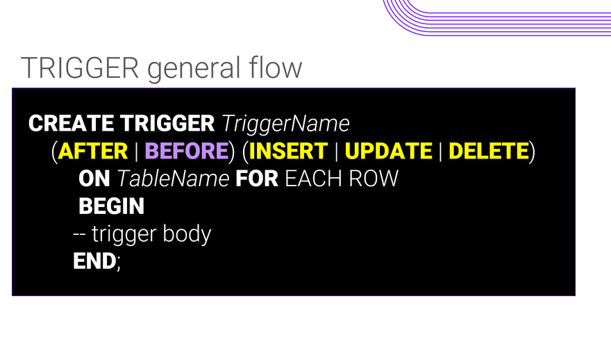 (AFTER | BEFORE) (INSERT | UPDATE | DELETE)