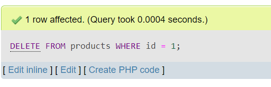 DELETE FROM products WHERE id = 1;