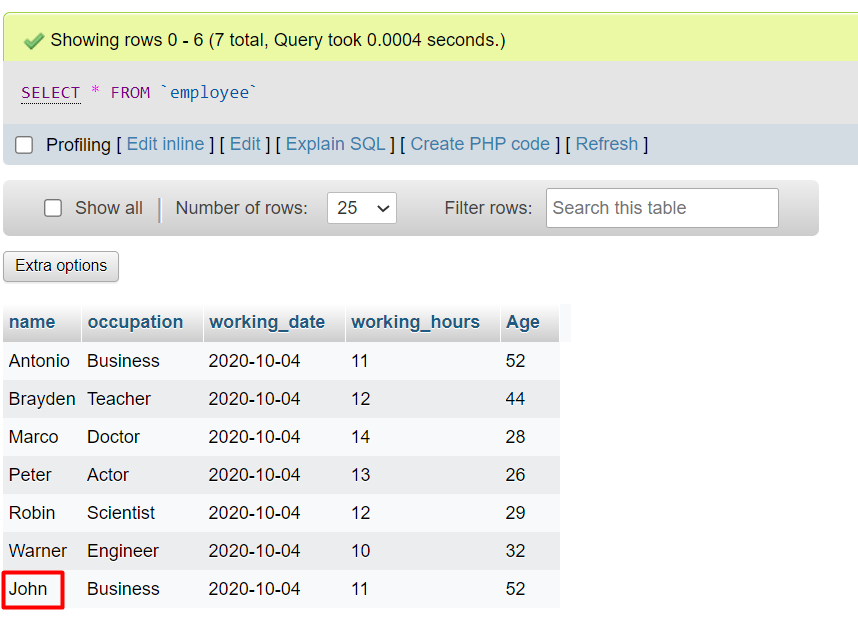 ('john', 'Business', '2020-10-04', '11', '52');