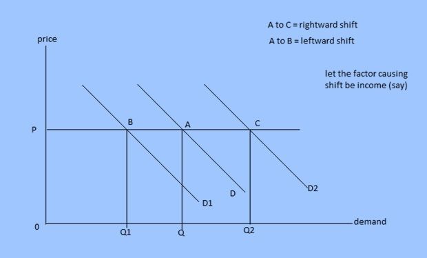 It can be defined as diagrammatic representation of change in demand brought by change in any other factor determining demand other than price. If any one of the factors changes, demand too changes at all possible prices. To show the change in demand, we need o construct another demand curve.