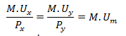 On the above figure M.U and units of commodity is measured along the y and x-axes. When consumer consumes 3rd coordinate of x he gets AB=M.U and when he consumes second unit of y he gets M.U equal to EF where AB=EF. In these situation consumers gets maximum satisfaction by spending his limited money.