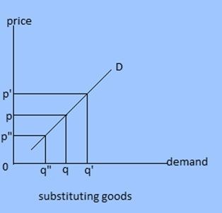 2. Cross demand : Demand primarily dependent upon prices of related goods is called cross demand. The complementary goods and substitutes are called related goods. In case of complementary goods like pen and ink demand for good is inversely related to the prices of other goods but the case in substituting goods are just opposite. Demand for substituting goods is directly related to prices.