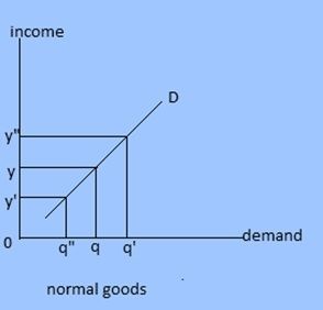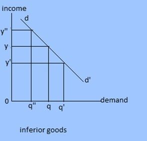 3. Income demand: Demand primarily dependent upon income is called income demand. This demand is sensitive or responsive to the change in income. In case of normal goods, demand increases with rise in income and vice versa. But in case of giffen goods demand decreases when there is increase income.