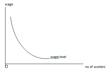 In the above figure, the downward sloped convex curve represents inverse relationship between wage level and no of workers employed.