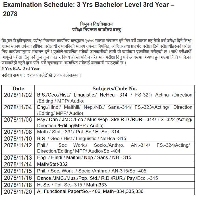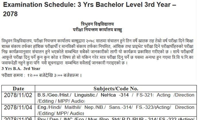 Tribhuvan University (TU) has published BA (Humanities) third year examination routine.
