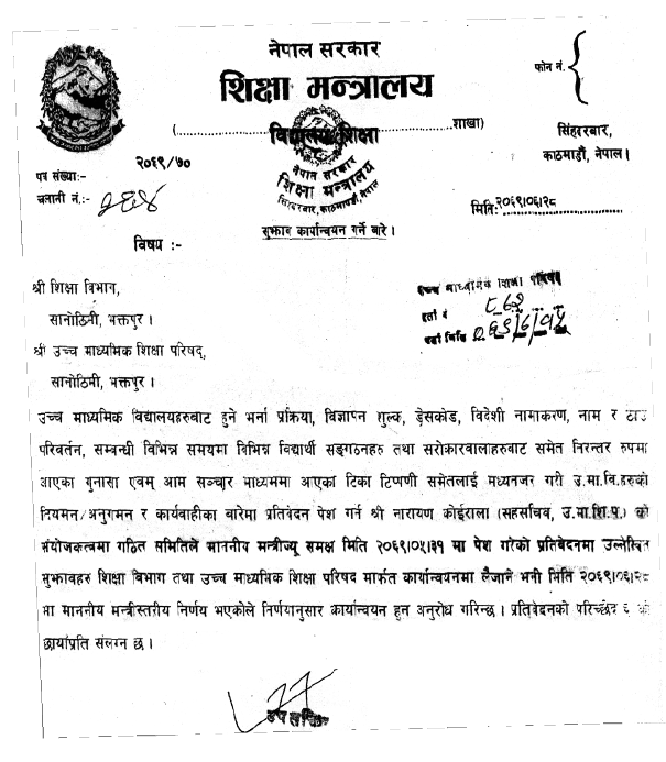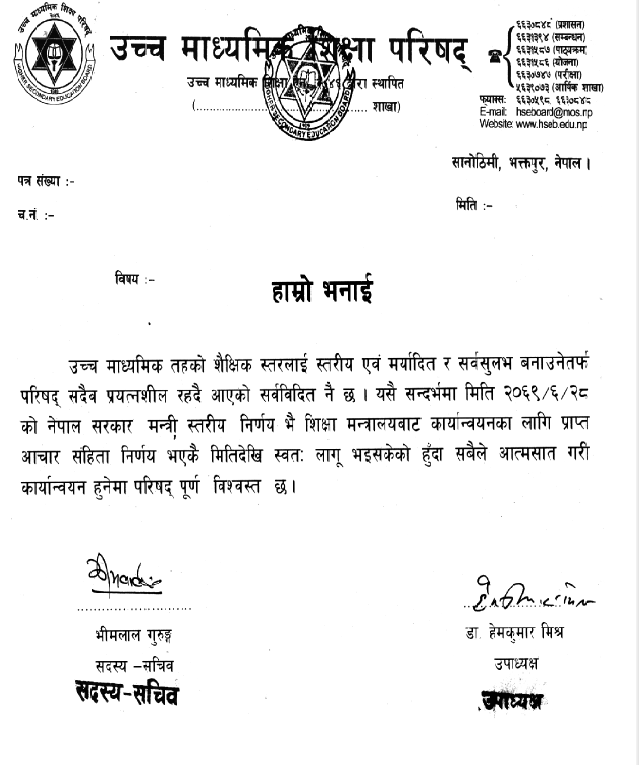 Scanned Copy of the letter Presented by HSEB