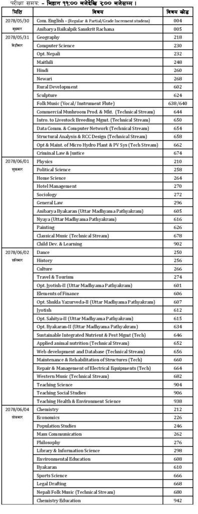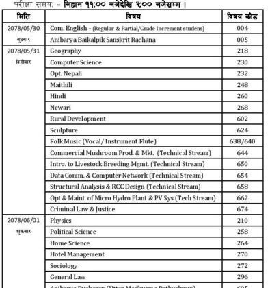 The examination schedule for Class 12 has been issued by the National Examination Board (NEB), Sanothimi, Bhaktapur.