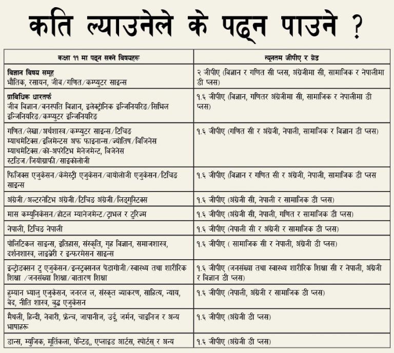 The above examples are just for making you understand better about the GPA and the subjects you can choose from. Please refer to the first image in the page which lists the min. GPA and subject wise grade requirement for each of the faculty. If you have any questions or confusions. You can message us on facebook or mail us at [email protected] for more details.