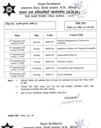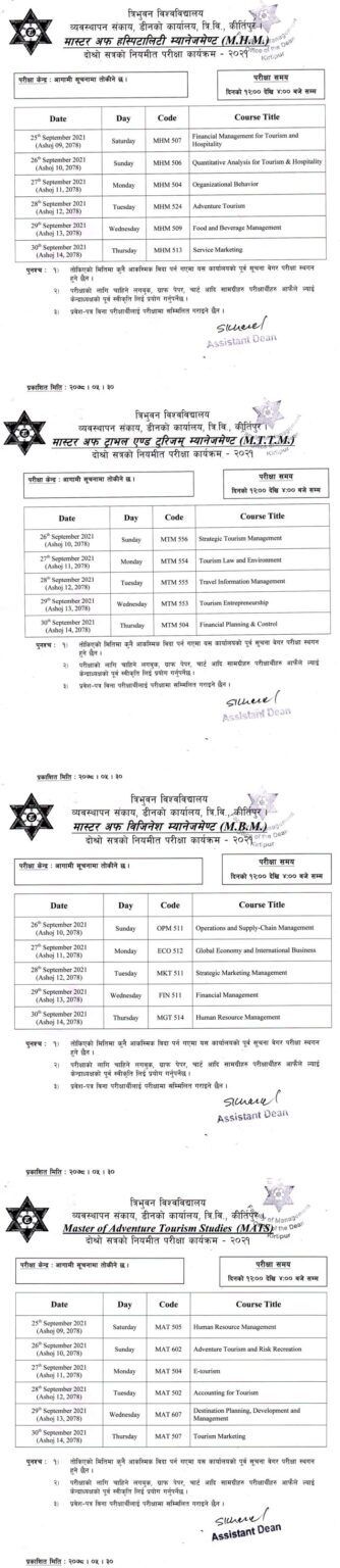 - Examination Date: Ashwin 09, 2078 (MHM and MATS) and Ashwin 10, 2078 (MTTM and MBM)