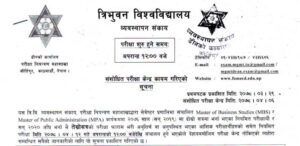 The examination center notification (amended) for the upcoming Master of Business Studies (MBS) and Master of Public Administration (MPA) Third semester Regular Examination 2021 has been released by Tribhuvan University, Faculty of Management, Dean Office, Kirtipur.