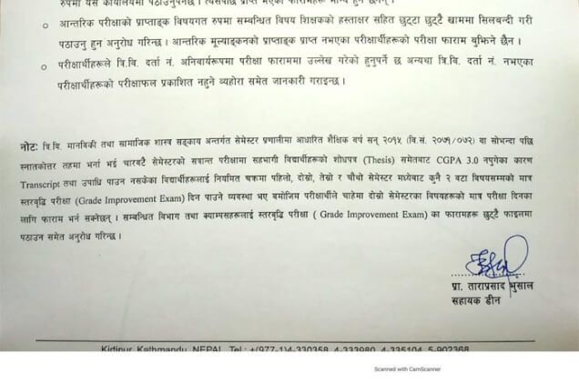 - Examination Form Fee (late submission): NRs. 3000/-