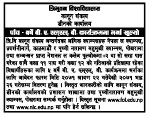 Tribhuvan University faculty of law announced new admissions for 5 years BALLB Program in affiliated and constituent colleges.