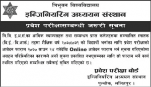 Tribhuvan University Institute of Engineering (TU-IOE) published an urgent notice today regarding the entrance examination for B.E/B.Arch programs offered by this institutions and other affiliated.