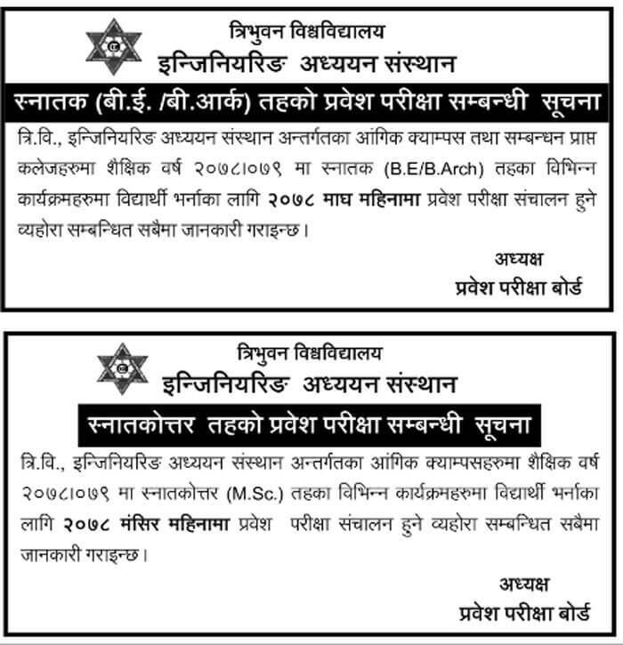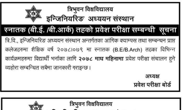 The entrance exam is for enrollments for the academic year 2078/79.