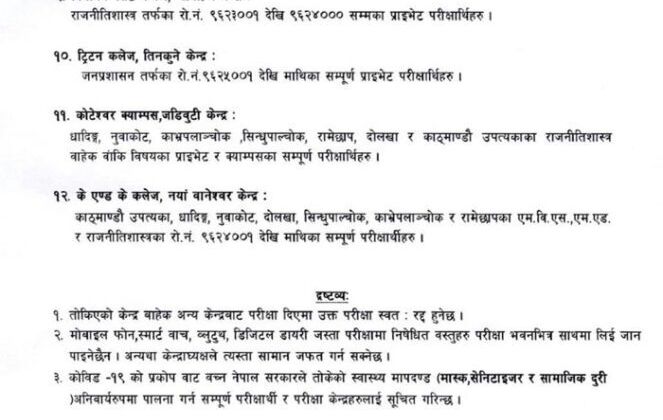 The examination starts from Ashwin 11, 2078 onwards and ends on Ashwin 20, 2078.