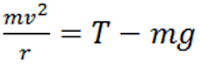 At the lowest point, weight of the body (mg) will be vertically downward, tension in the string will be vertically upward and centripetal force will be towards the centre.