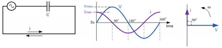 Equation ii is the type of current developed in the purely capacitive circuit.