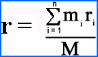 The centre of mass of the system is defined as the point having the position vector “r” and is equal to: