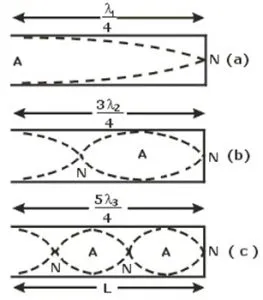 In this way, for the 4th, 5th…. modes of vibration the frequency of wave emitted are 7f0, 9f0……. which are called 7th , 9th …… harmonics i.e. in the closed organ pipe only odd harmonic are present.