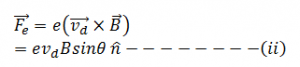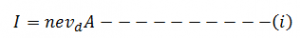 Consider a conductor having length l, cross-section area A in a uniform magnetic field. If n be the number of electrons per unit volume (electron density), vd be the drift velocity of electron having electronic charge e then the current on the conductor is:
