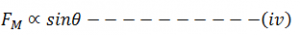 This is the expression for Lorentz magnetic force where FM is perpendicular to the plane of v and B.
