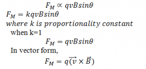 Experimentally it is found that magnitude of magnetic force is