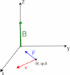 Consider a charged particle or charge =q is moving with velocity v on a magnetic field B can experience magnetic force FM. If the direction of magnetic field is represented by Y-axis, velocity of charged particle is along XY plane making angle θ with direction of magnetic field (B), then the direction of magnetic force is represented by Z-axis.