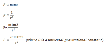 It states that everybody in this universe attracts other body with a force which is proportional to the product of the masses of two bodies and inversely proportional to the square of the distance between their centers.