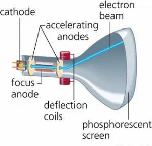 If both magnetic and electric field are applied and their magnitude and direction is adjusted so that the charged particles move without deviation. At this condition charge particle incident at point O at the fluorescent screen,