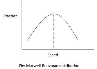 - The molecules of gases are moving with different speeds. However, there exists certain pattern of distribution of speed among the molecules. This is known as Maxwell-Boltzman distribution.