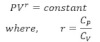 Where Cp and Cv at pressure and vol. constant sp. heat capacity.