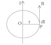 Consider a straight conductor carrying current I is as shown in figure. Let P be the point at a distance r from conductor where we have to draw a concentric circle of radius r. The direction of magnetic field at pint P is given by the tangent of the circle. Where the direction of B and dl is along the same direction and angle between them is 0°.