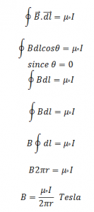 From Ampere’s Law we know the magnetic field due to straight current carrying conductor is:
