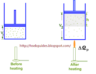 If the piston is free to move, the gas may be allowed to expand at a constant pressure. Let the amount of heat supplied is now is DQp. The addition of heat causes two changes in the system: