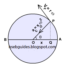 Consider a particle ‘P‘ moving around a circle of radius ‘r‘ ( r = xo) with uniform angular velocity ‘w‘. The linear speed of the particle is VP = xo w