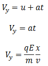 Now the net velocity of the charged particle when it just emerges from the electric field is,