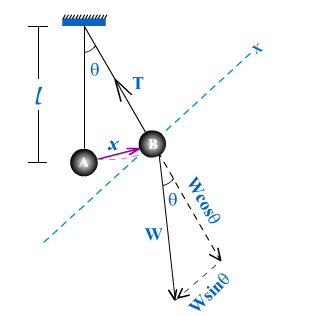 If x be the linear displacement of the bob from its mean position, then from figure, the length of arc AB is nearly equal to x