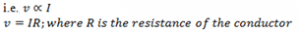 It states, the current passing through any conductor is proportional to the potential difference applied across the conductor provided that physical condition (mechanical strain, temperature) of the conductor remains unchanged.