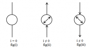 In fig(i) there is no deflection of compass needle due to the absence of current. In fig(ii) there is deflection of compass needle due to the current on the conductor. In fig(iii) the is deflection of compass needle to the opposite direction in reversing the direction of current.